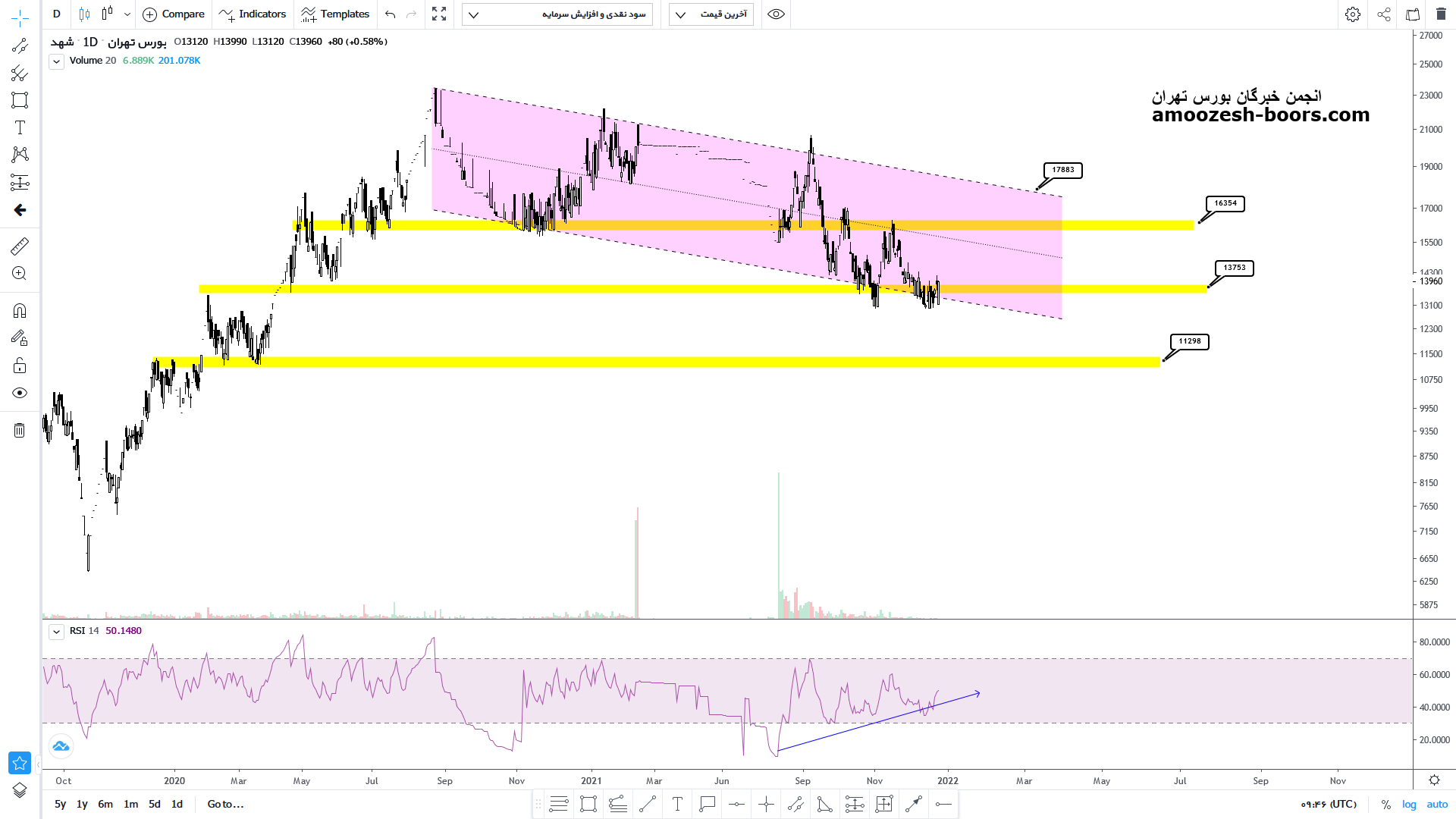 درصورت حمایت، قیمت میتواند به ترتیب تا محدوده های مقاومتی 1500 و 1800 به ترتیب صعود کند و همچنین درصورت اصلاح بیشتر و شکست محدوه حمایتی مهم و قوی 1350 تومان، نزول بیشتر تا محدوده حمایتی 1000 تومان ادامه خواهد داشت.