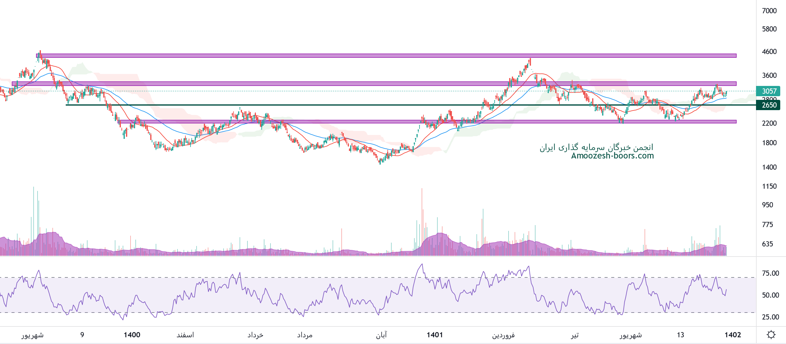حمایت قشکر 2800 ریال: این سطح بهعنوان یک نقطه حیاتی برای جلوگیری از اصلاح بیشتر قیمت عمل میکند، اگر قیمت به زیر این سطح نفوذ کند، انتظار میرود که حمایت بعدی در محدوده 2500 ریال قرار داشته باشد.