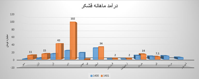 نماد قشکر در دوره یک ماهه منتهی به 31 مرداد ماه 1401، مبلغ 69.9 میلیارد تومان درآمد داشته که نسبت به ماه قبل 885% افزایش و نسبت به میانگین ماه های قبل 1031% افزایش داشته است.