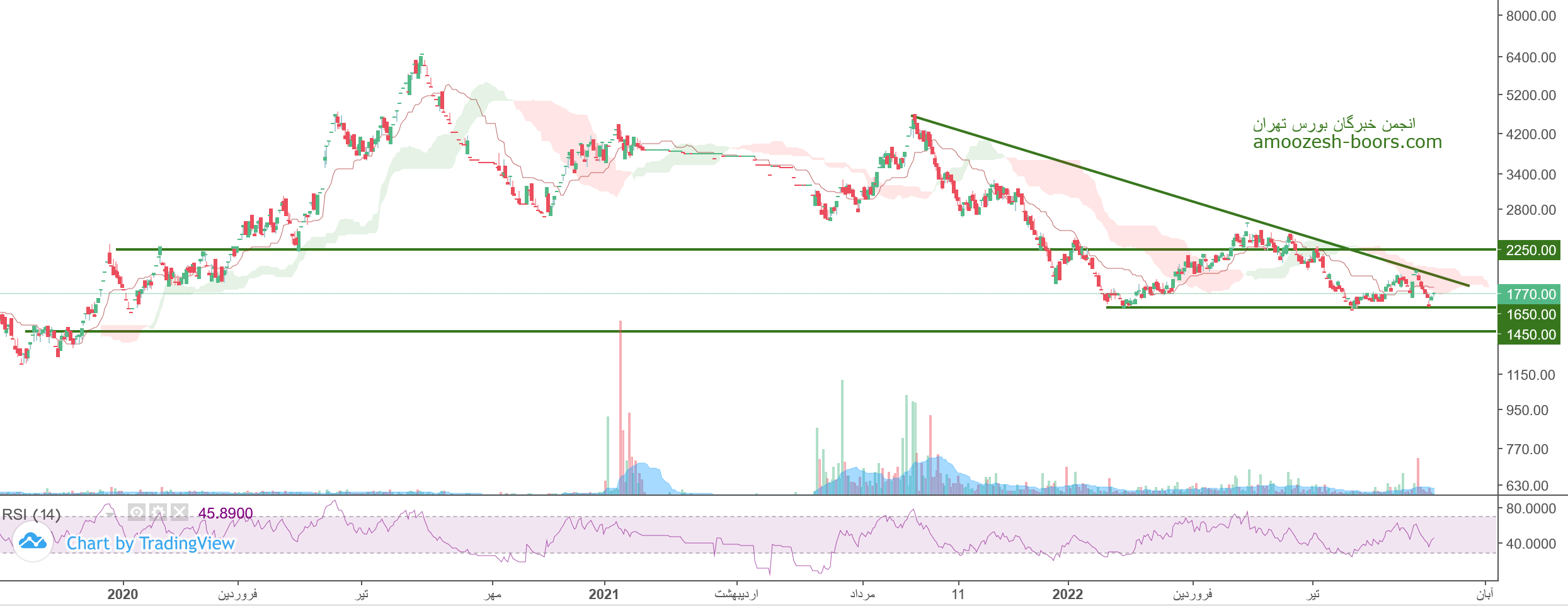 نماد قشکر در حال حاضر حمایت 1650 ریال را دارا میباشد، در صورت تثبیت قیمت، حرکت سهم تا 1900 ریال دور از ذهن نخواهد بود، همچنین در صورت از دست رفتن حمایت، حمایت بعدی 1450دریال در نظر گرفته خواهد شد که در این صورت حد ضرر فعال میگردد.
