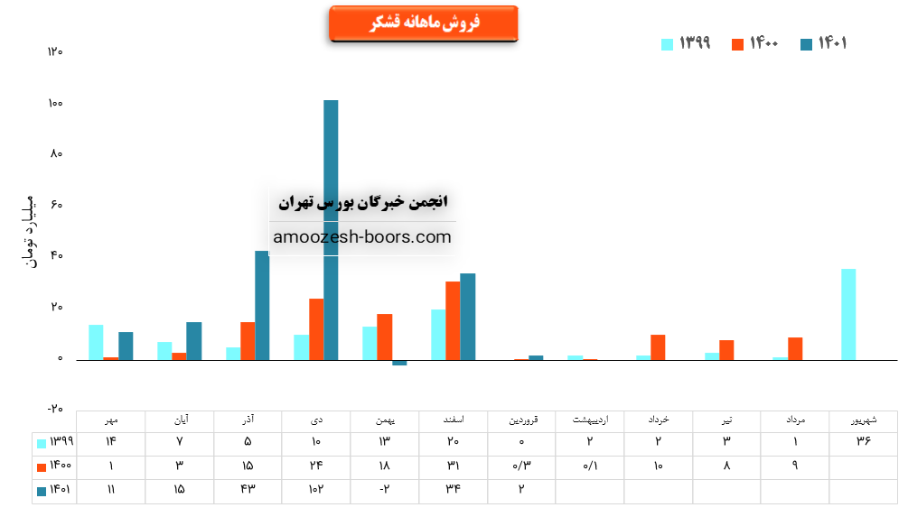 فروش سهم قشکر: 203 میلیارد تومان که نسبت به دوره مشابه گذشته 119% افزایش یافته است.