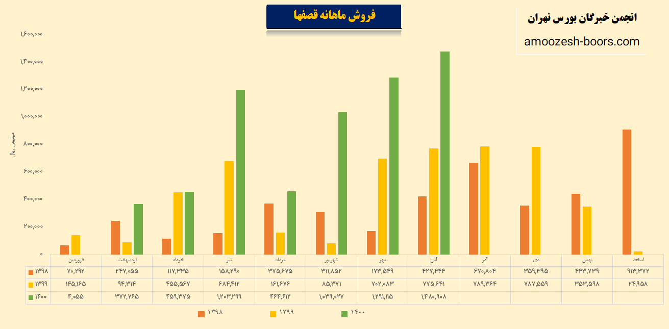 سهم قصفها در آذر 1400 مبلغ 178 میلیارد تومان درامد داشته که این میزان نسبت به ماه گذشته 20% و همچنین نسبت به مدت مشابه سال گذشته 125% رشد پیدا کرده است!