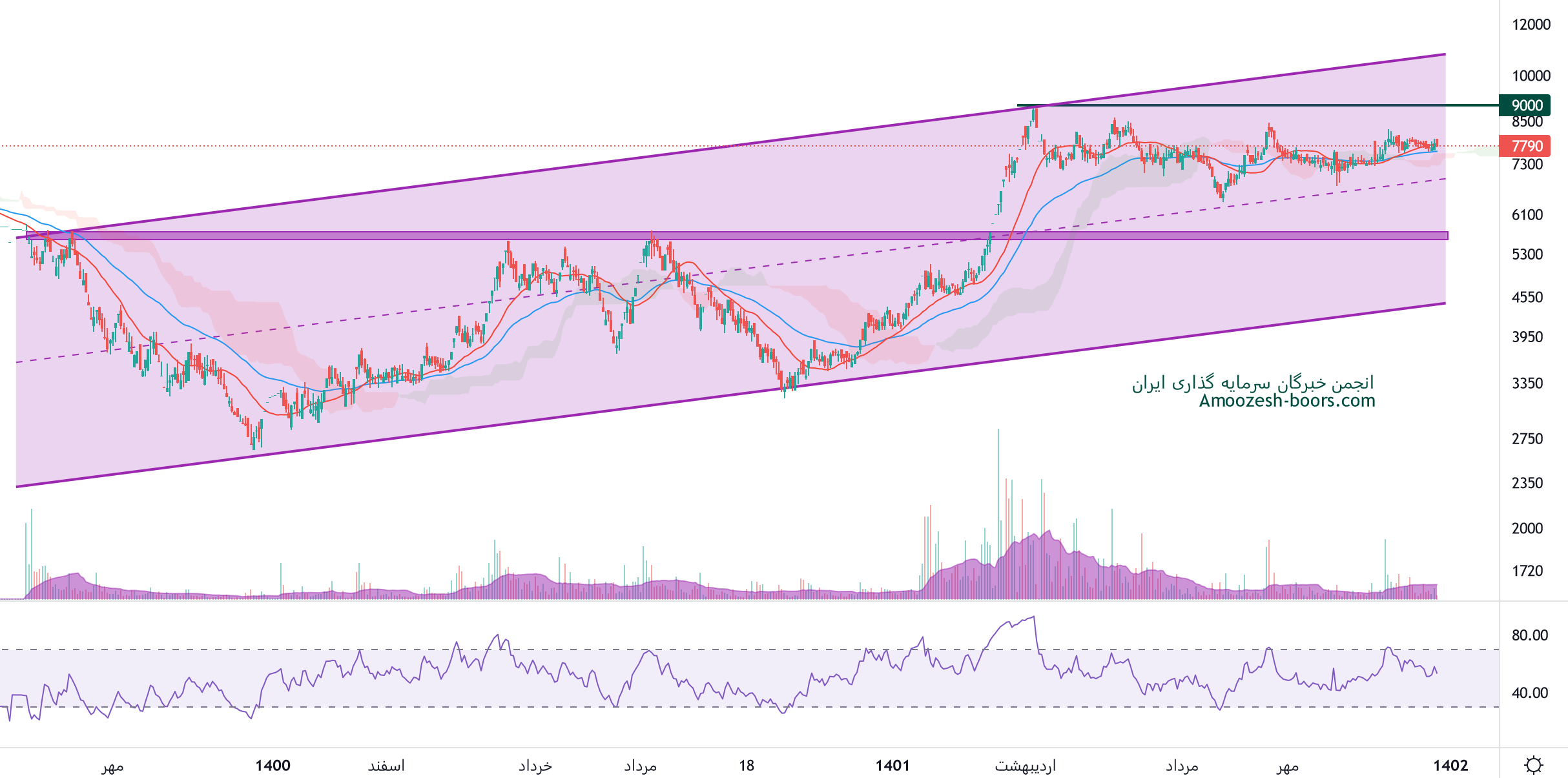 در صورت شکست مقاومت 1000 و تثبیت بالای آن، میتوان انتظار ادامهی روند صعودی و رشد قیمت سهم تا مقاومت بعدی در محدودهی 1150 تومان را داشت.