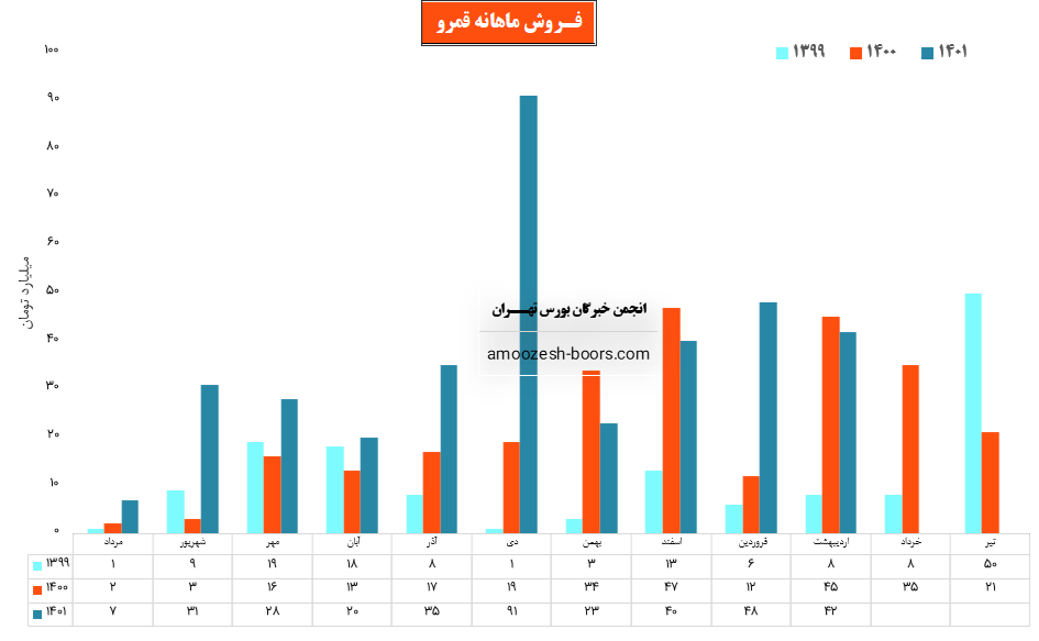 فروش نماد قمرو: 324 میلیارد تومان که نسبت به دوره مشابه گذشته 99% افزایش یافته است.