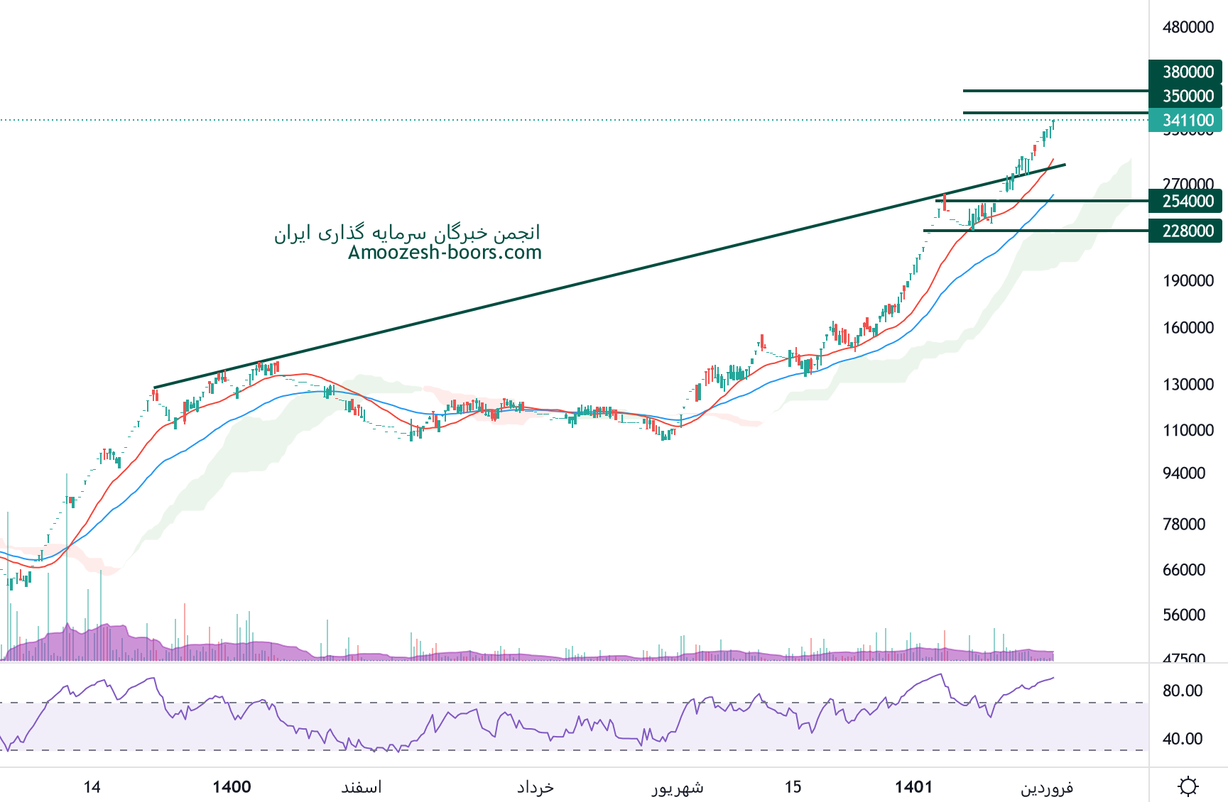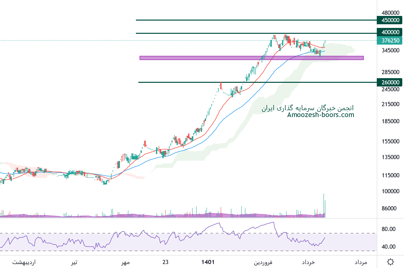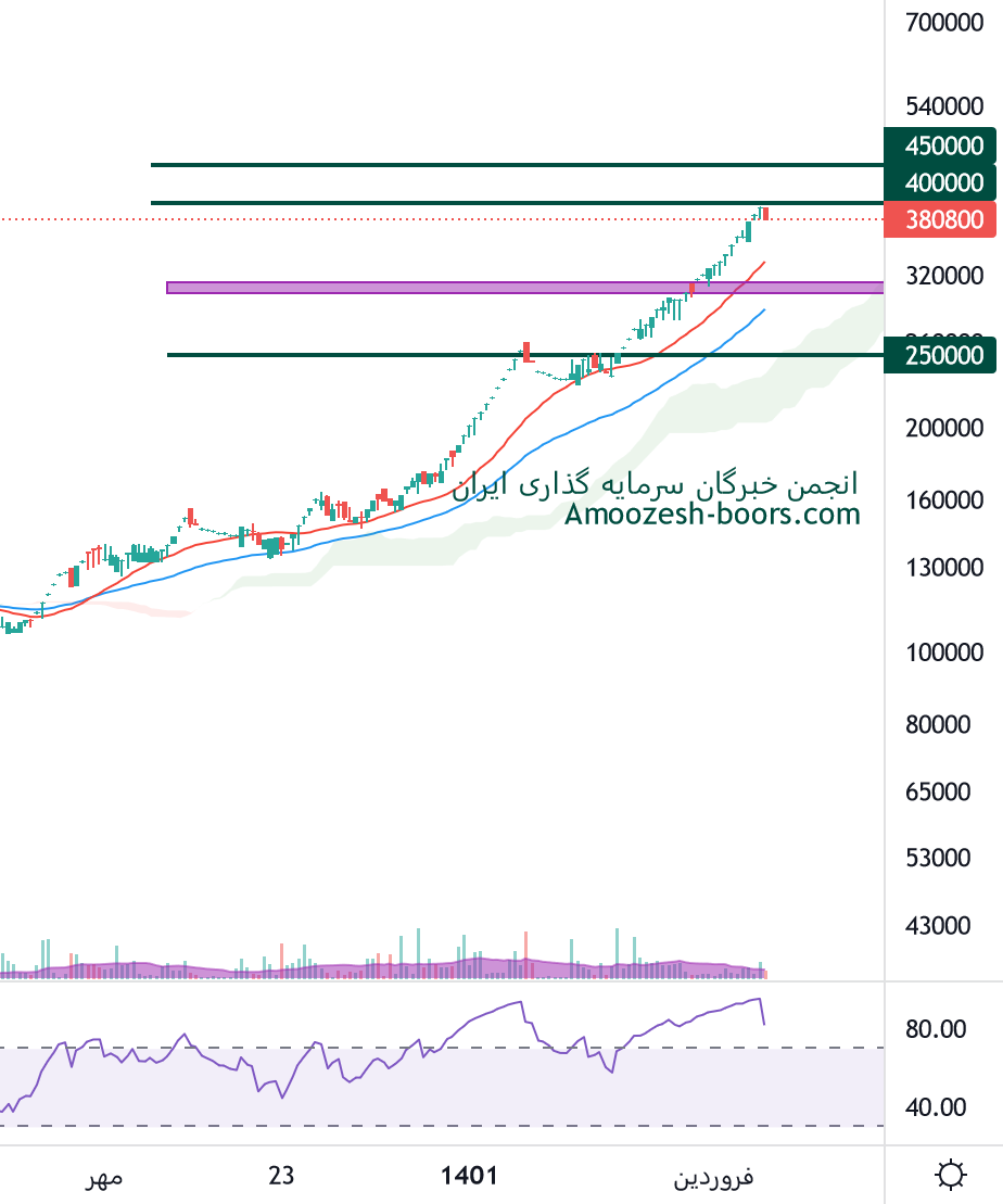 همانطور که پیش بینی میشد نماد قنقش به قیمت 400000 ریال رسیده و به این سطح واکنش نشان داده، 450000 ریال سطح مقاومت بعدی سهم قنقش در نظر گرفته خواهد شد، همچنین در صورت بروز نشانه های اصلاحی قوی، اولین حمایت سهم 300000 ریال ارزیابی میگردد.