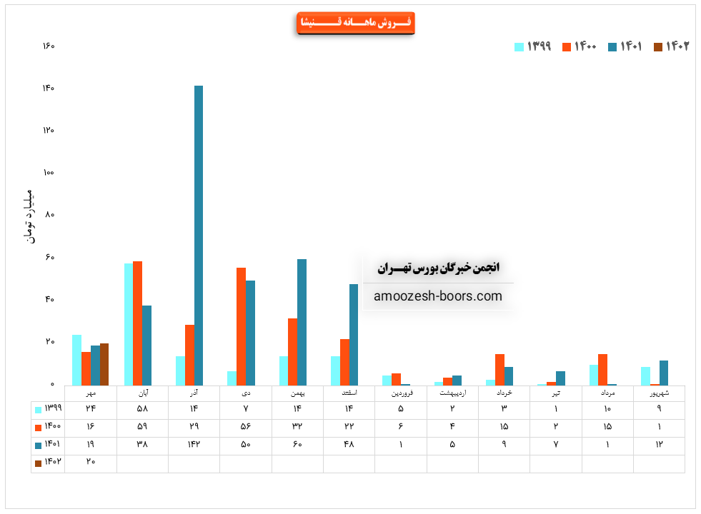 فروش سهم قنیشا: 99 میلیارد تومان که نسبت به دوره مشابه گذشته 50% کــــــاهش یافته است.