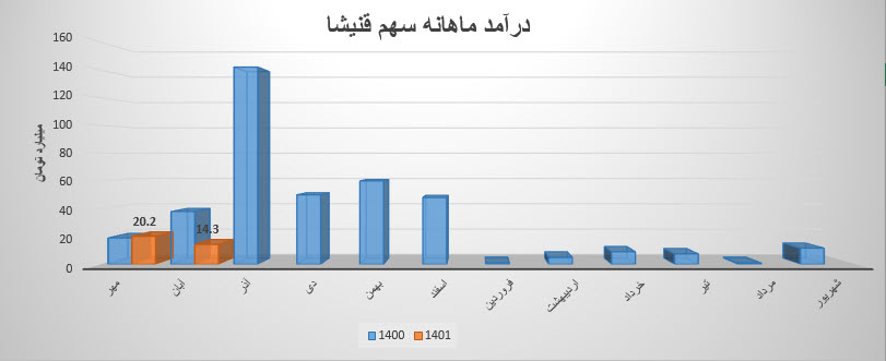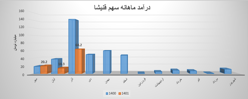 تمام این رقم از طریق فروش داخلی تامین گردیده است . درآمد آذر ماه سهم قنیشا تغییرات زیر را تجربه نموده است .