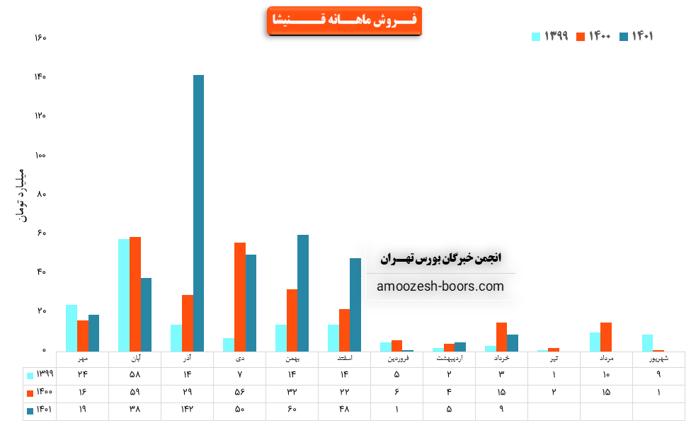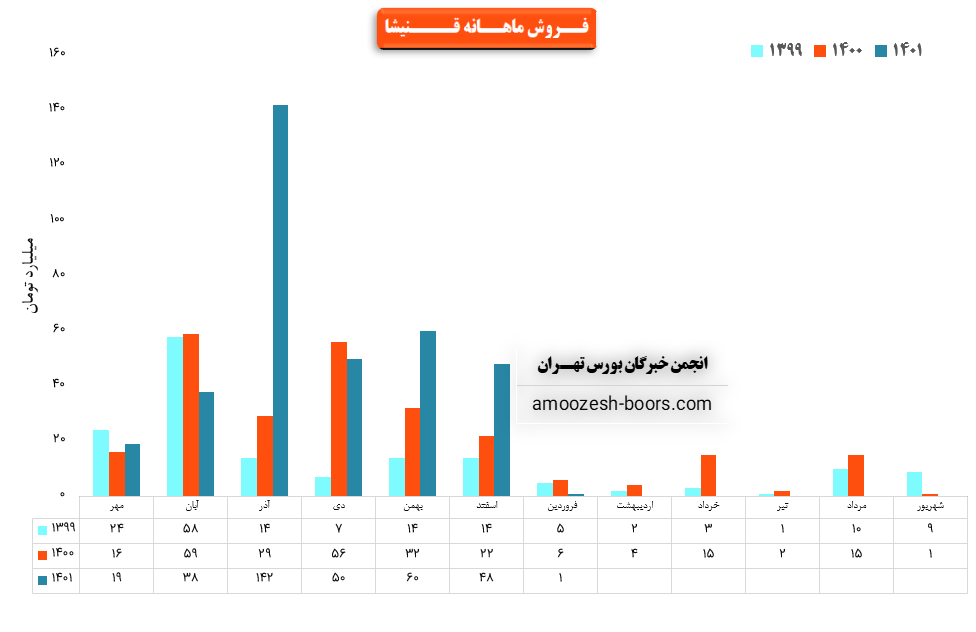 فروش نماد قنیشا: 357 میلیارد تومان که نسبت به دوره مشابه گذشته 67% افزایش یافته است.