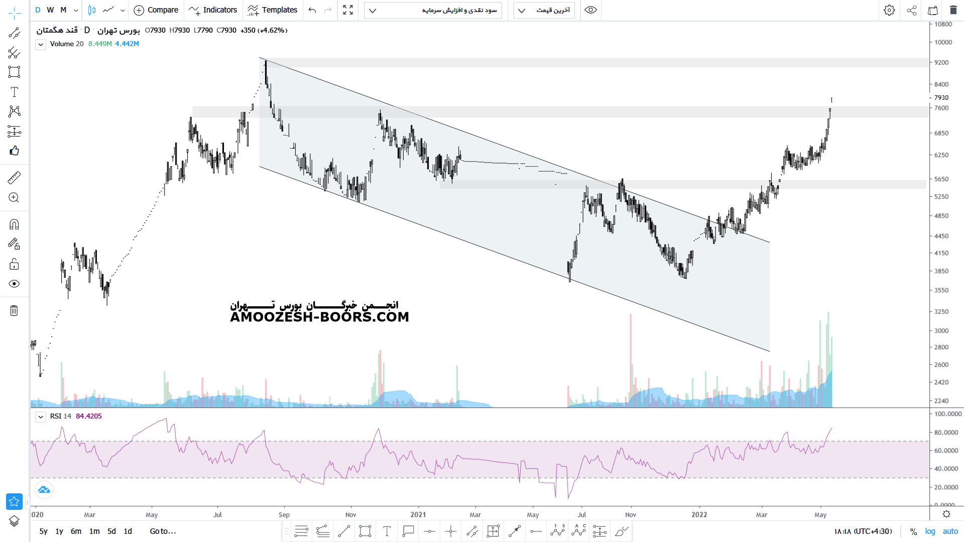 نماد قهکمت در حال حاضر محدوده حمایت 5600 ریال را دارا میباشد، در صورت تثبیت قیمت، حرکت سهم به ترتیب تا 6200 و 7000 ریال دور از ذهن نخواهد بود، همچنین در صورت از دست رفتن این حمایت ،حمایت بعدی 4900 ریال در نظر گرفته خواهد شد که در این صورت حد ضرر فعال میگردد.