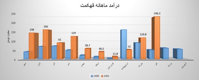 سهم قهکمت نسبت به دوره 1 ماهه مشابه سال قبل 13% کاهش درآمد داشته است.
