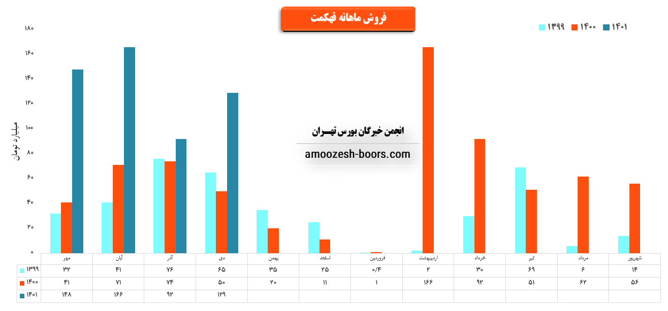 سهم قهکمت در دی ماه مبلغ ۱۲۹ میلیارد تومان درآمد داشته که این میزان در مقایسه با ماه گذشته ۴۰ % و همچنین در مقایسه با مدت مشابه سال گذشته ۱۵۸ % رشد درآمد پیدا کرده است.