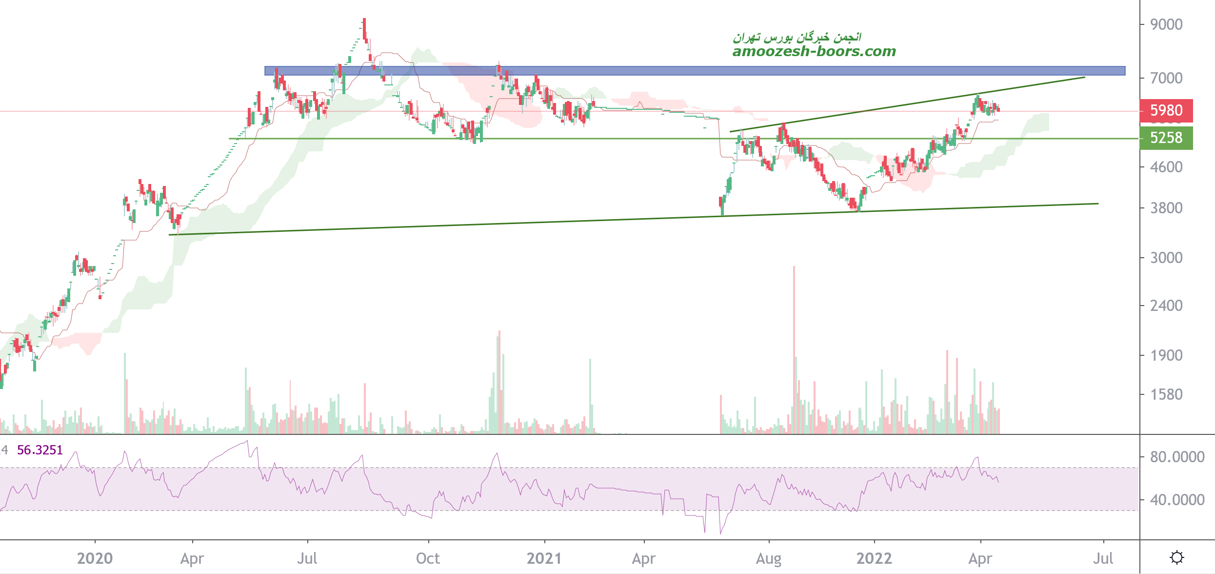 قیمت نماد قهکمت در حال حاضر درگیر مقاومت خط داینامیک صعودی میباشد و در صورت ادامه دار شدن تقاضا و شکستن این مقاومت،مقاومت بعدی 7000 ریال در نظر گرفته خواهد شد و در صورتی که قیمت وارد فاز اصلاحی شود اولین حمایت سهم 5200 ریال خواهد بود که در این صورت حد ضرر سهم برای دوستان کوتاه مدتی فعال خواهد شد.