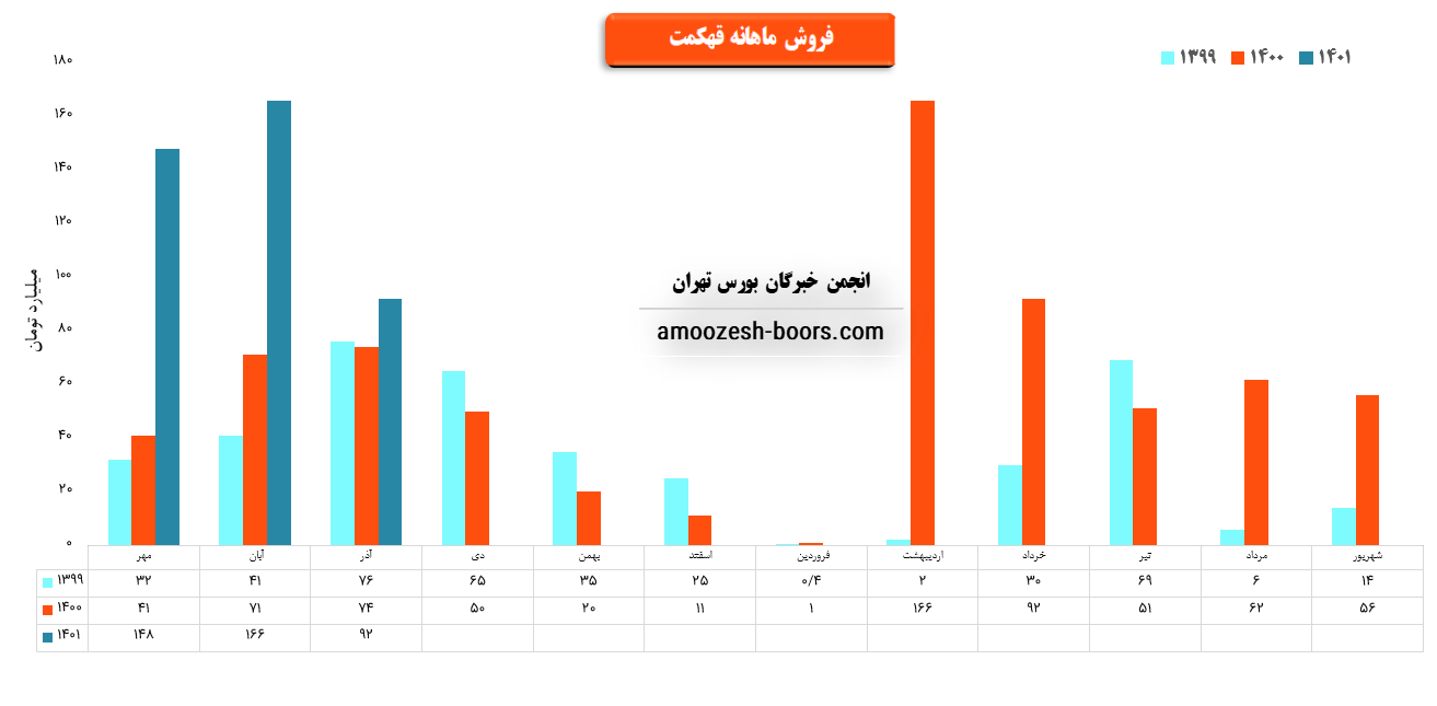 نماد قهگمت در آذر 1400 مبلغ 92میلیارد تومان درامد داشته که این میزان نسبت به ماه گذشته 45% افت و همچنین نسبت به مدت مشابه سال گذشته 24% رشد پیدا کرده است!