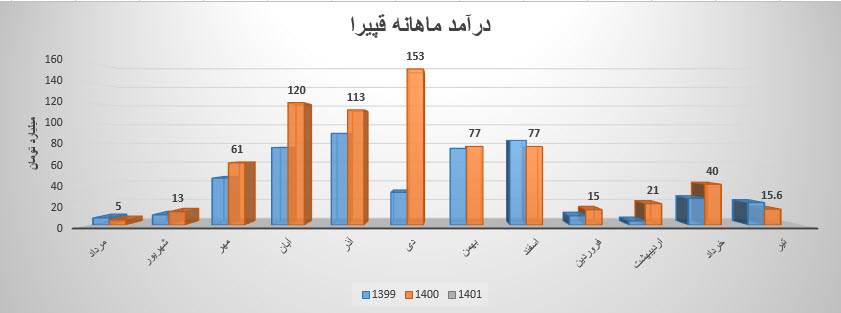 نماد قپیرا تا انتهای خرداد ماه 402,710 میلیون ریال از محصولات خود را به فروش رسانده است که نسبت به دوره 1 ماهه مشابه سال قبل 56% افزایش داشته است.