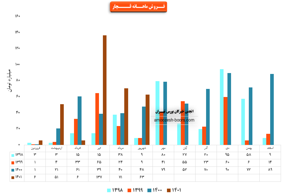 درآمد سهم قچار در این دوره نسبت به ماه قبل 2202% افزایش و نسبت به میانگین ماه های قبل 553% افزایش داشته است.