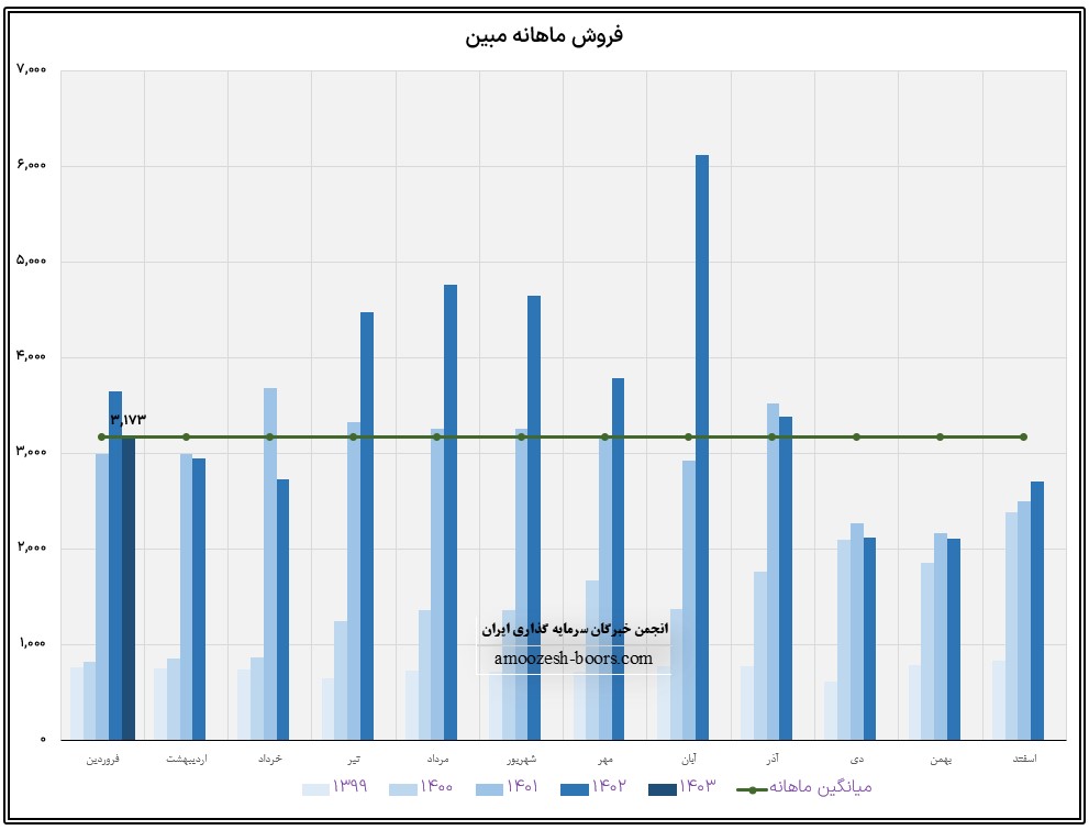 فروش مبین در این ماه افزایش 28% در مقایسه با ماه گذشته داشته است، همچنین در مقایسه به مدت مشابه 8% افزایش و نسبت به متوسط ماهانه 27% کاهش داشته است.