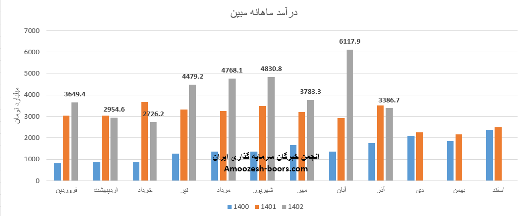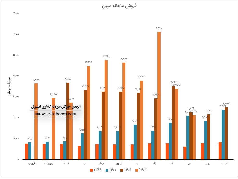 فروش آذر ماه سال 1402 سهم مبین 3386.7 میلیارد تومان گزارش شده است، تغییرات درآمدی مبین به شرح زیر میباشد: