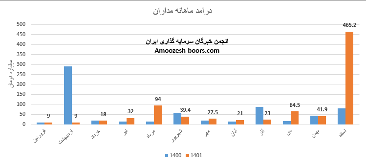 شرکت داده پردازی ایران ( نماد مداران ) با ثبت گزارش خیره کننده ای موفق به افزایش 482 درصدی درآمد نسبت به مدت مشابه سال قبل گردیده است، درآمد اسفند ماه سال 1401 سهم مداران برابر با 465 میلیاردو 200 میلیون تومان گزارش شده است به طوری که این رقم افزایش 1010 درصدی نسبت به ماه گذشته و افزایش 1249 درصدی نسبت متوسط ماهانه داشته است، علت اصلی افزایش فروش نماد مداران مربوط به تجهیزات سخت افزاری میباشد، که در ماه قبلی هیچ فروشی از این محل انجام نشده، شناسایی سود 380 میلیارد تومانی بابت قرارداد فروش 2 دستگاه مین فریم به یکی از بانک های کشور میباشد که احتمال تکرار مجدد این میزان از درآمد برای نماد مداران غیر محتمل میباشد، مجموع عملکرد 12 ماهه سهم مداران 27% رشد نسبت به کل درآمد سال گذشته را نشان میدهد.