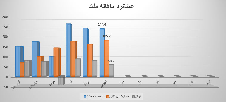همچنین سهم ملت در تیر ماه مبلغ 180 میلیارد تومان به بیمه نامه های خود خسارت پرداخت کرده که این میزان نسبت به ماه گذشته 23% افزایش یافته است لذا با توجه به آمار مذکور تراز ملتبا منفی 302% کاهش در مقایسه با ماه گذشته به مثبت 89 میلیارد تومان رسیده است.