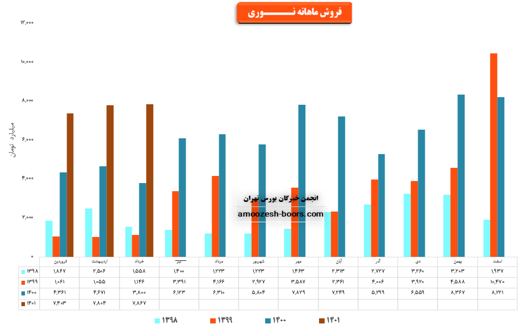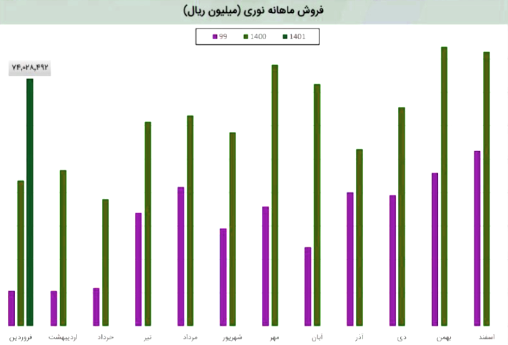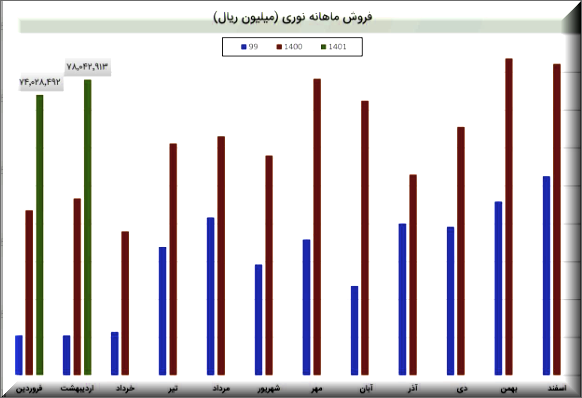 ضمنا ۵۴ % از فروش این ماه سهم نوری از ان فروش داخلی و مابقی حاصل از فروش صادراتی محصولات  بوده است .