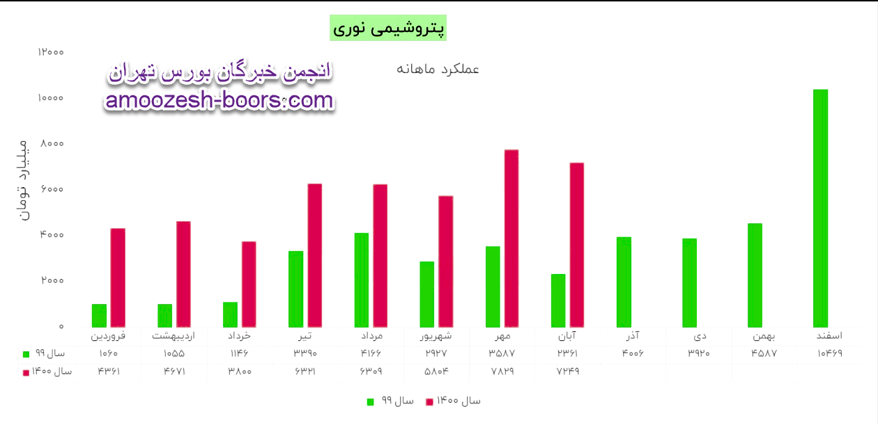 شرکت پتروشیمی نوری با نماد نوری طی عملکرد 1 ماهه منتهی به 1400/06/31 نسبت به دوره 1 ماهه مشابه سال قبل 98% افزایش داشته است.