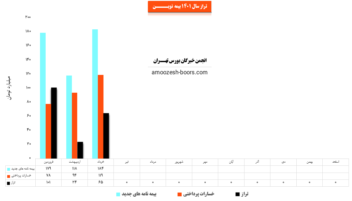 همچنین نماد نوین در خرداد ماه مبلغ 119 میلیارد تومان به بیمه نامه های خود خسارت پرداخت کرده که این میزان با افزایش 27 درصدی نسبت به ماه گذشته روبرو شده و لذا با توجه به آمار مذکور تراز این سهم نوین با 171% افزایش در مقایسه با ماه گذشته به 65 میلیارد تومان رسیده است.