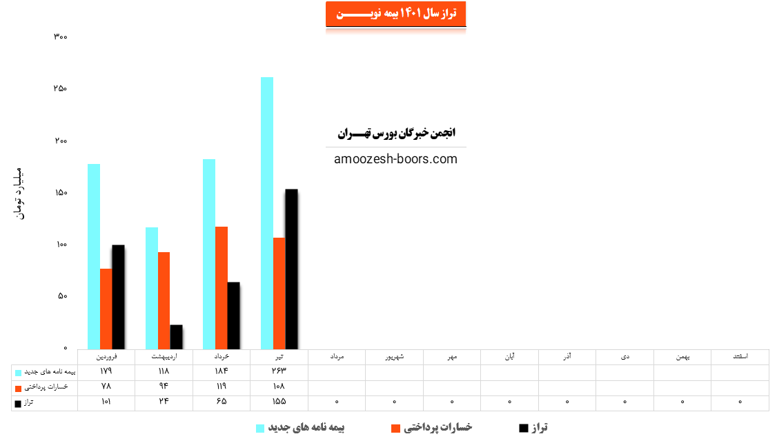 نماد نوین (شرکت بیمه نوین) در تیر ماه سال 1401 حدود مبلغ 263 میلیارد تومان بیمه نامه جدید صادر کرده که این میزان در مقایسه با ماه گذشته 43% افزایش پیدا کرده است.