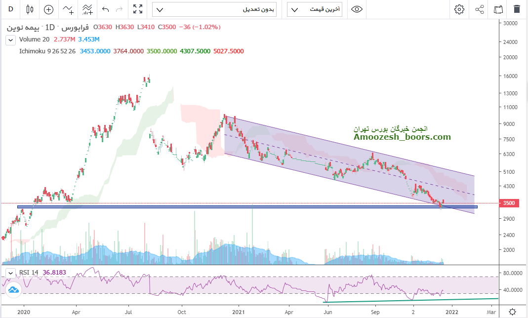قیمت با رسیدن به محدوه حمایت استاتیک و همچنین کف کانال نزولی با ایجاد واگرایی مثبت واکنش مثبتی نشان داده و میتوان انتظار تثبیت قیمت درین محدوده را داشت درین صورت مقاومت 4000 تا سقف کانال 5000 سر راه سهم قرار دارد .