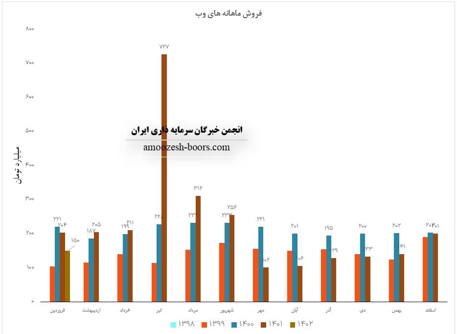 نماد های وب (شرکت داده گستر عصر نوین) در فروردین ماه 1402 حدود مبلغ 150 میلیارد تومان درآمد داشته که این میزان در مقایسه با ماه گذشته 25% و همچنین در مقایسه با مدت مشابه سال گذشته 26% افت پیدا کرده است.