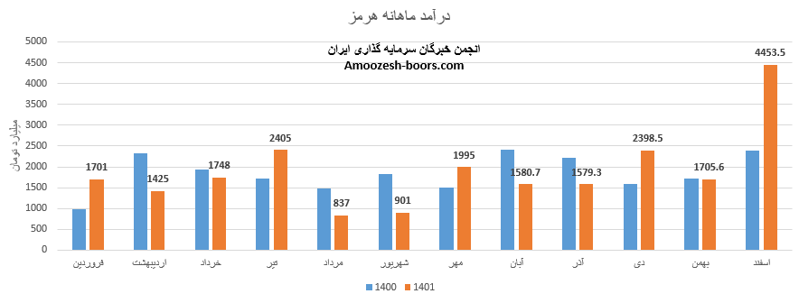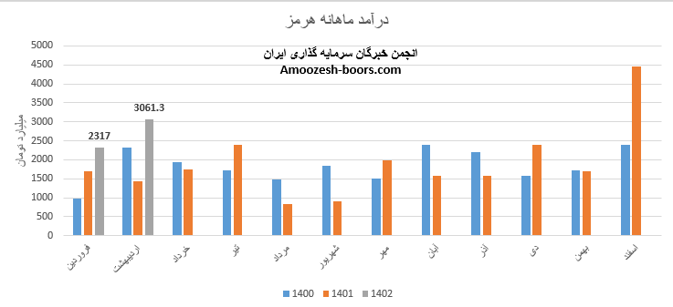 نماد هرمز در عملکرد ماهانه اردیبهشت ماه به فروش 3061.3 میلیارد تومانی دست یافته است، این رقم در مقایسه با ماه گذشته 32% و نسبت به مدت مشابه 115% افزایش را نشان میدهد، میزان فروش اسلب صادراتی که در مقایسه با ماه گذشته کاهش نرخ 12 درصدی داشته، در مقدار فروش رشد 208 درصدی را تجربه نموده است، عملکرد دو ماهه سهم هرمز در مقایسه با مدت مشابه 72% افزایش داشته و 14% از کل درآمد سال گذشته را پوشش داده است، سهم هرمز 63% از درآمد خود را از محل فروش صادراتی تامین نموده است.