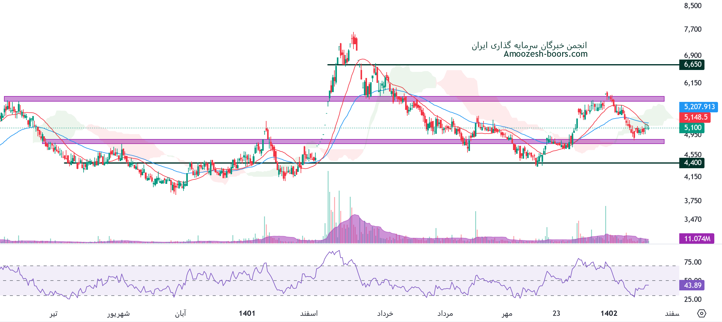تحلیل تکنیکال سهم همراه نشان میدهد که قیمت در محدوده حمایتی 4800 ریال و مقاومتی 5800 ریال در حال نوسان میباشد، در صورت شکست هر یک از سطوح، حمایت بعدی سهم همراه 4400 ریال و در صورت ایجاد فشار فروش مقاومت بعدی همراه 6650 ریال در نظر گرفته میشوند.