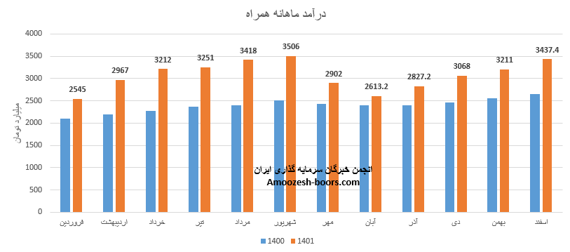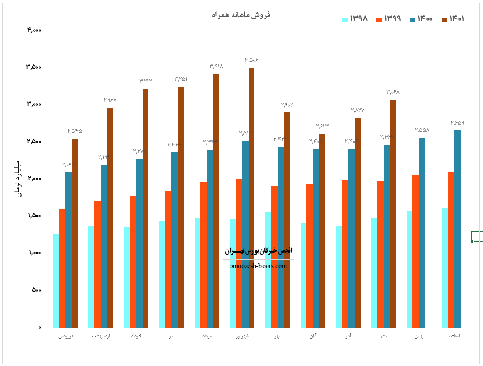 نماد همراه (شرکت ارتباطات سیار ایران) در بهمن ماه سال 1401 حدود مبلغ 3211 میلیارد تومان درآمد داشته که این میزان نسبت به ماه گذشته 5% و همچنین نسبت به مدت مشابه سال گذشته 26% افزایش پیدا کرده است .