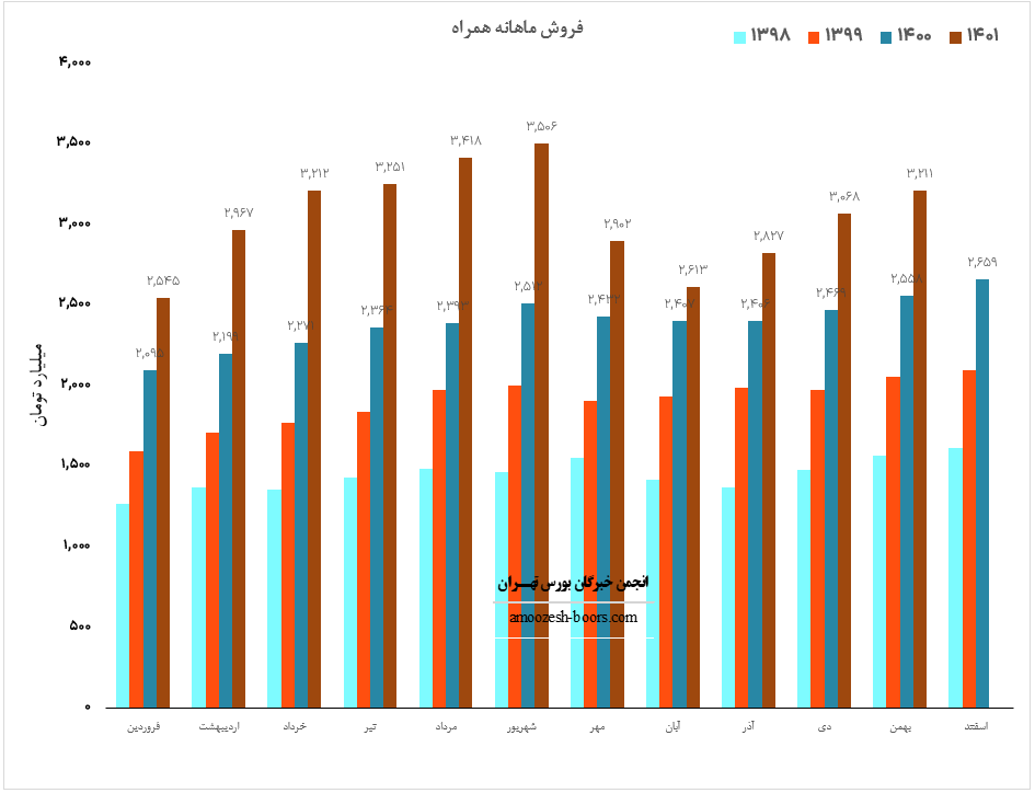 فروش نماد همراه: 27338 میلیارد تومان که نسبت به دوره مشابه گذشته 30% افزایش یافته است.