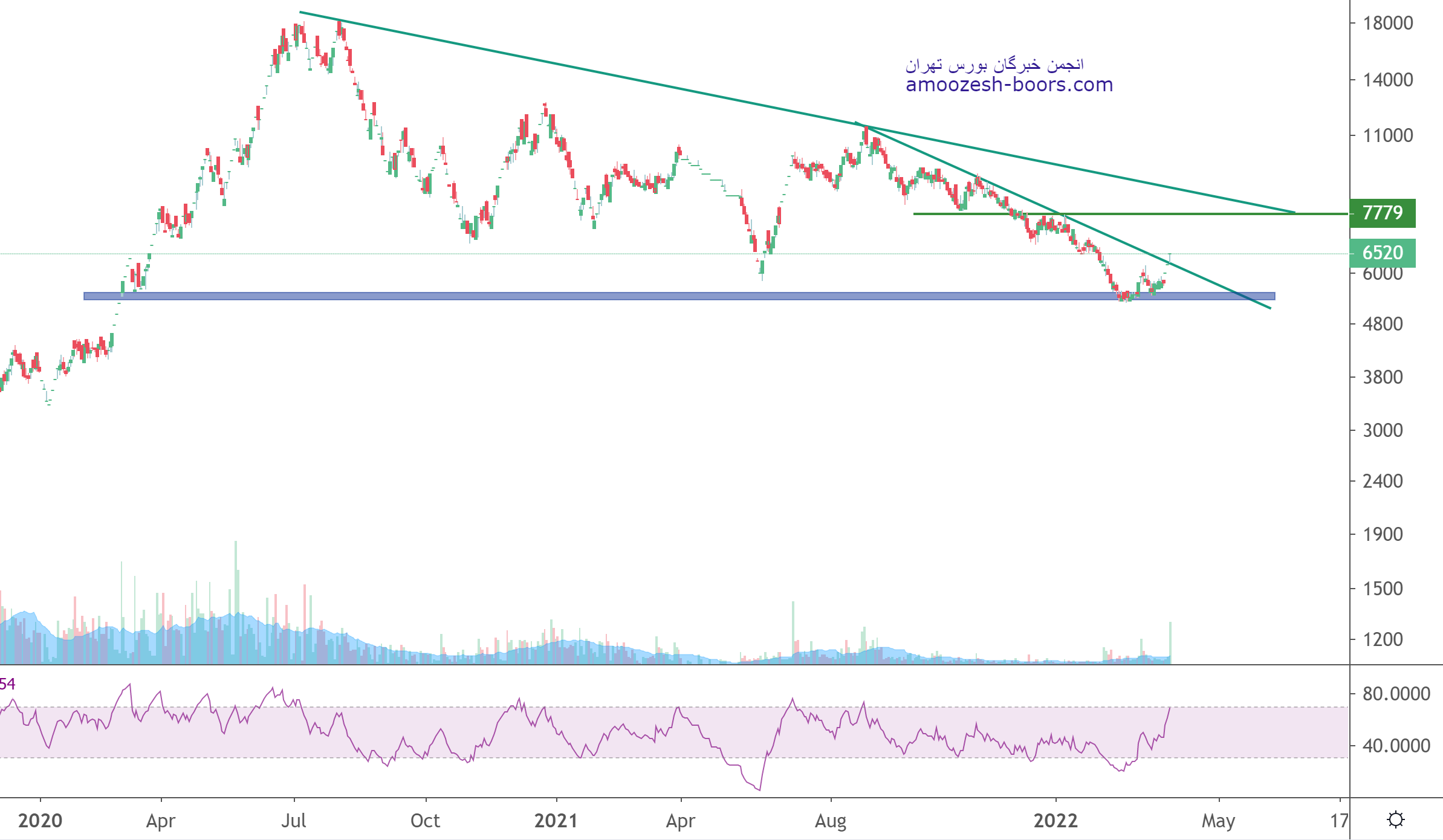 قیمتسهم والبر بعد از برخورد با کف حمایتی و نشان دادن واکنش مثبت در حال حرکت صعودی به سمت تارگت خط داینامک نزولی است و در این مسیر مقاومت 7800 ریال را بر سر راه خود دارد و در صورت اصلاح حمایت سهم والبر عدد 5500 ریال خواهد بود.