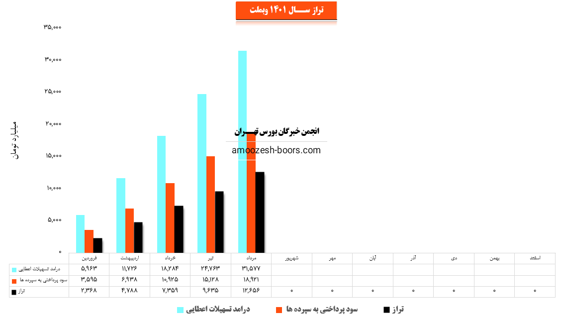 نماد وبملت (بانک ملت) با نماد وبملت در تیر ماه سال 1401 حدود مبلغ 24763 میلیارد تومان از محل تسهیلات اعطایی به افراد درآمد داشته که این میزان در مقایسه با ماه گذشته 35% افزایش پیدا کرده است.