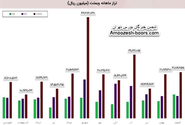 تراز بانک در این دوره نسبت به میانگین ماه های قبل 19% افزایش داشته است.