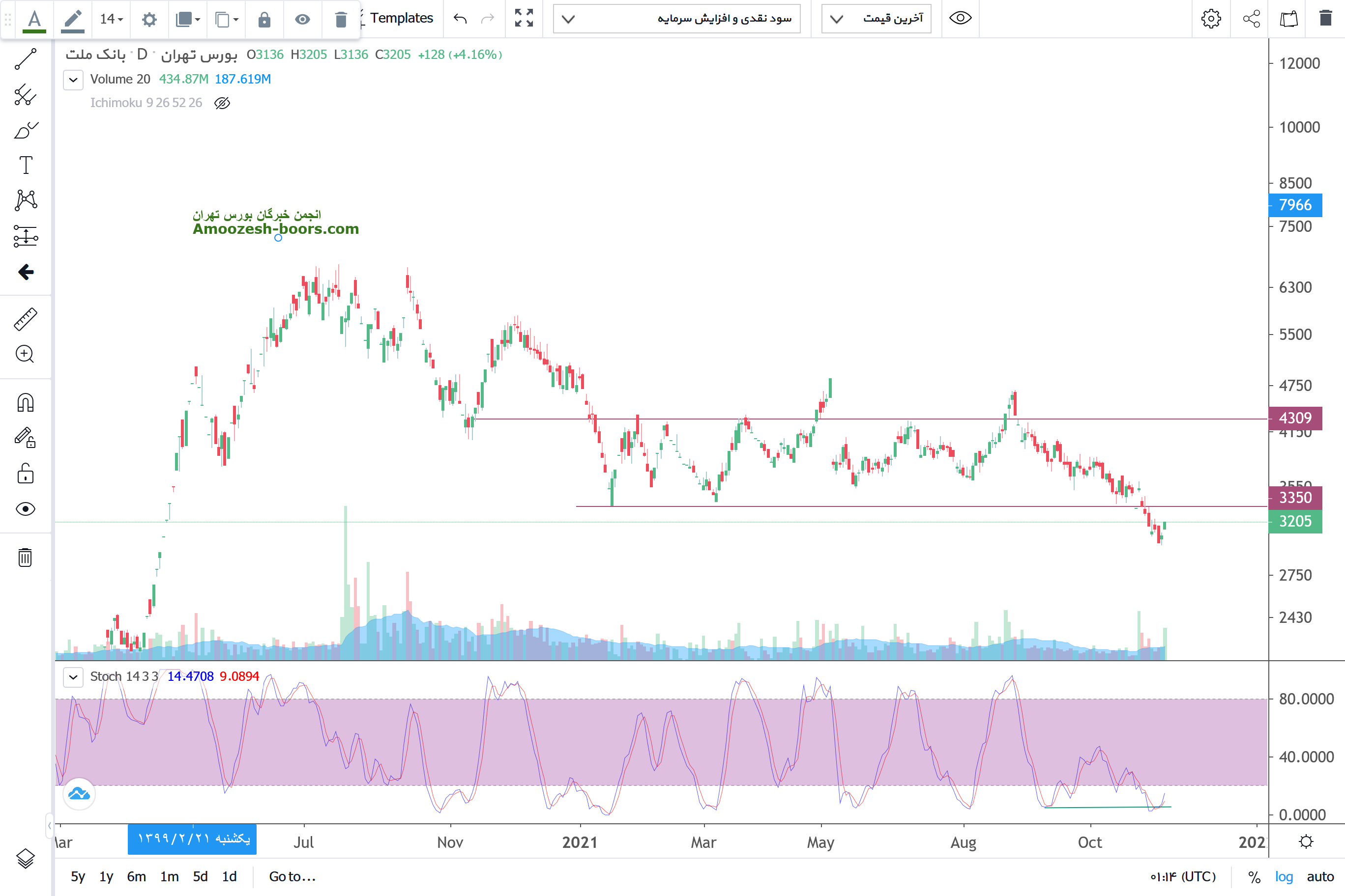 با توجه ارائه گزارشات مالی بانک ملت و حاکم بودن مومنتوم فروش و هیجان منفی ، شکست کف حمایت استاتیک محتمل میباشد و درین صورت حد ضرر فعال شده و به فشار فروش دامن زده و قیمت نقاط پاین تر را تست خواهد نمود حمایت های 3000 و 2800 برای سهم در نظر گرفته میشود.