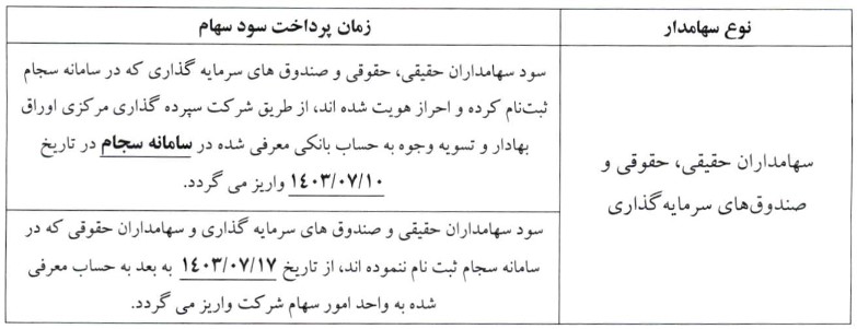 در انتهای مجمع عمومی سالیانه وبوعلی 23 تومان معادل 41% EPS به ازای هر سهم تقسیم گردید.