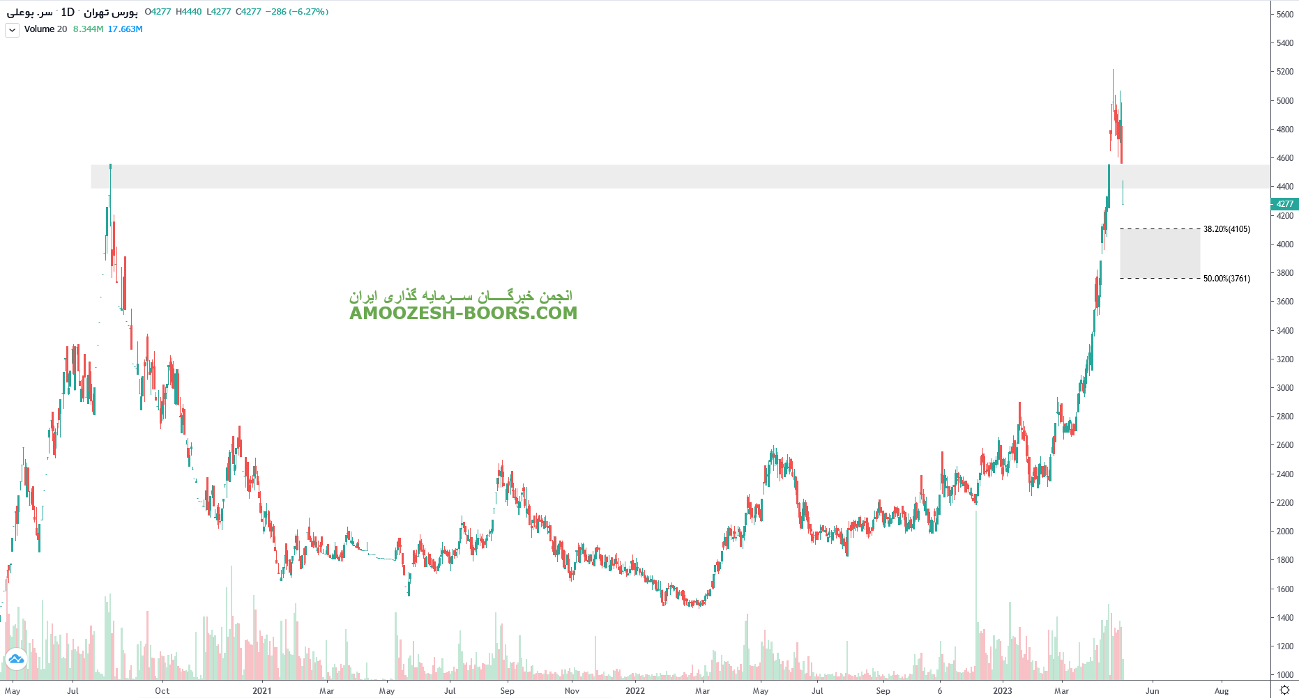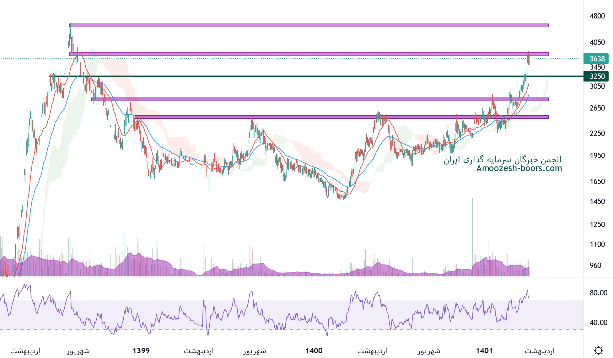 نماد وبوعلی درگیر مقاومت محدوده 3700 ریال میباشد، در صورت ادامه دار بودن فشار خرید و عبور قیمت از این محدوده مقاومتی، مقاومت بعدی سهم وبوعلی محدوده 4500 ریال خواهد بود، همچنین اولین حمایت سهم 3250 ریال در نظر گرفته خواهد شد.
