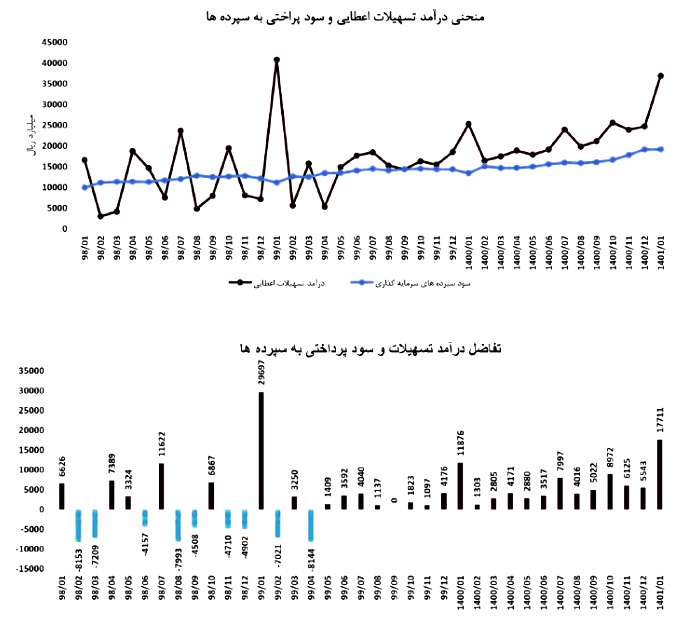 همچنین این بانک در بهمن ماه ۲۹۳۷ میلیارد تومان به سپرده های خود سود پرداخت کرده که این میزان در دی ماه ۲۸۴۷ میلیارد تومان بوده است.