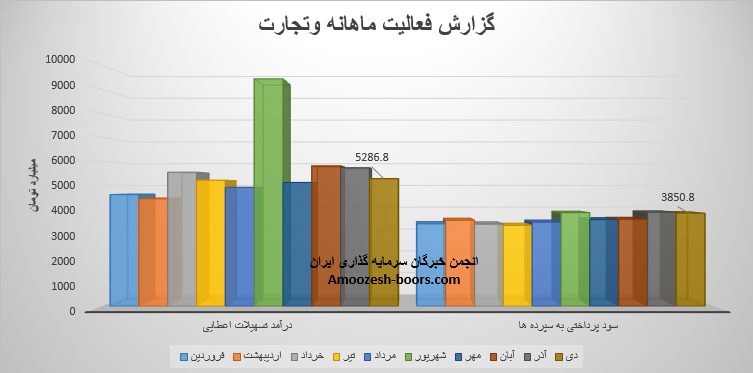 همچنین سهم وتجارت در آذر ماه مبلغ 28311 میلیارد تومان به سپردههای خود سود پرداخت کرده که این میزان با افزایش 14 درصدی نسبت به ماه گذشته روبرو شده و لذا با توجه به آمار مذکور تراز وتجارت با 18% رشد نسبت به ماه گذشته به 8457 میلیارد تومان رسیده است.