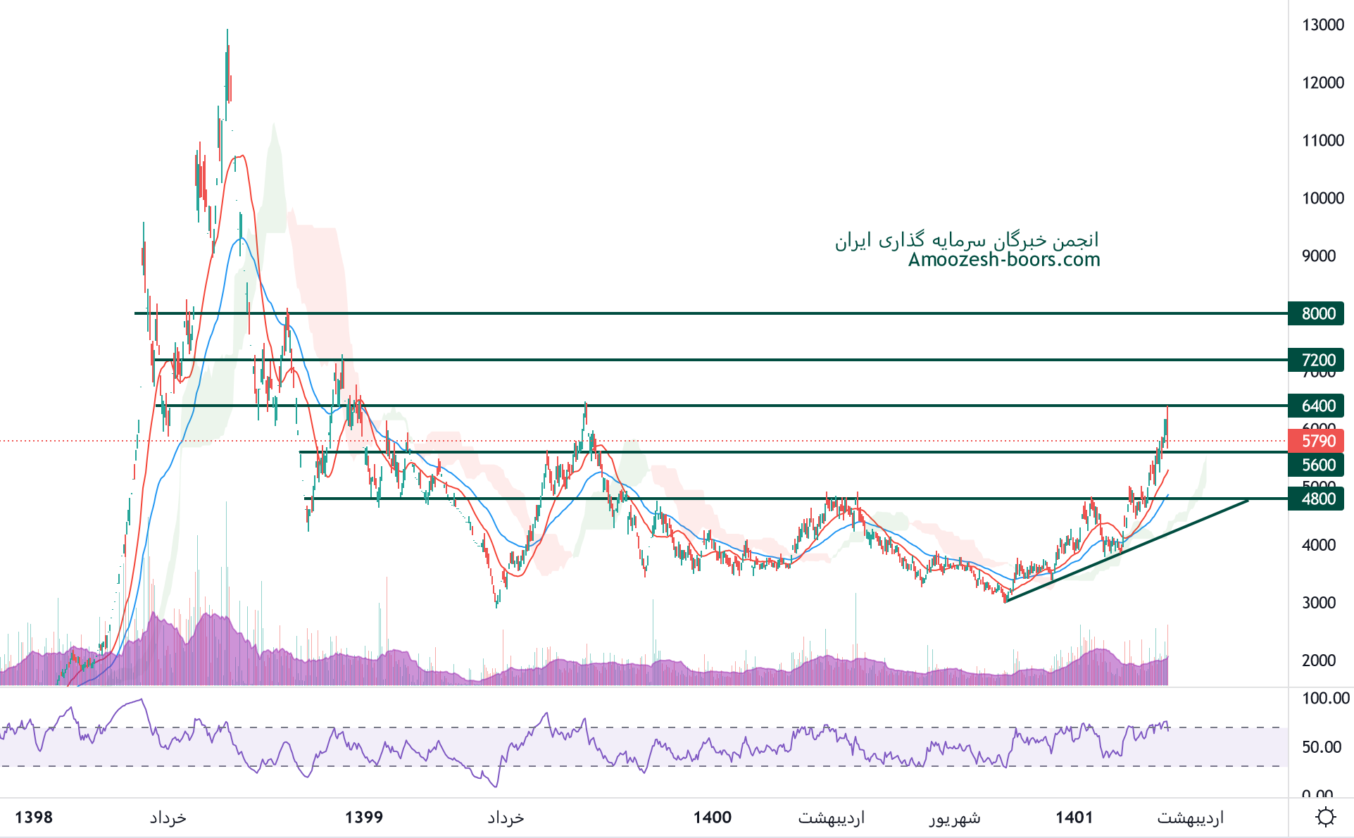 نماد وخارزم مابین محدوده حمایتی 5600 ریال و مقاومتی 6400 ریال قرار دارد، در صورت عبور سهم از مقاومت، مقاومت بعدی 7200 ریال در نظر گرفته خواهد شد، همچنین در صورت از دست رفتن سطح حمایتی، اولین حمایت 4800 ریال ارزیابی میگردد.