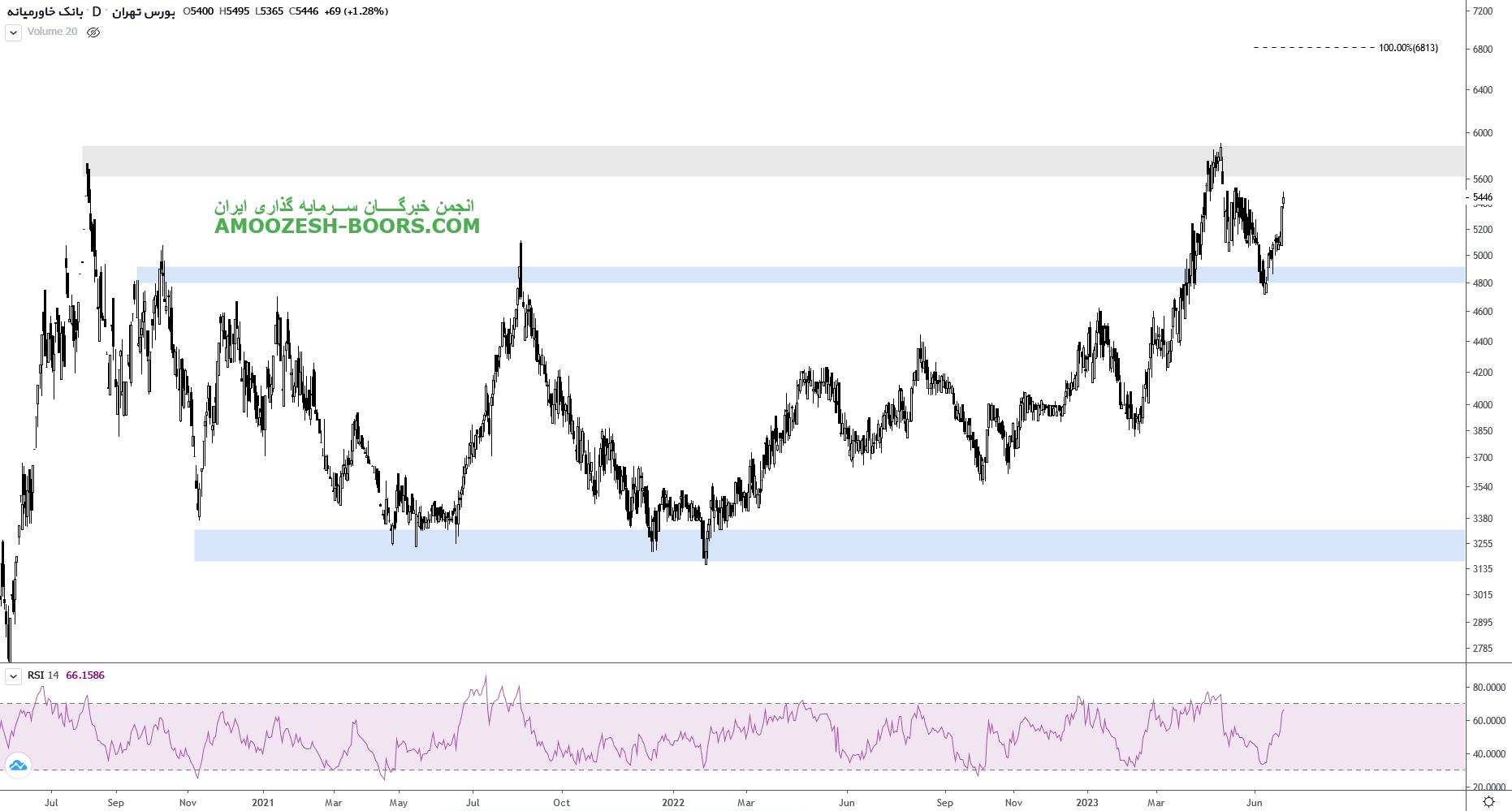 سهم وخاور پس از برخورد ناحیه حمایتی ۴۹۰ تومان و چرخش از ناحیه مذکور در حال حرکت به سمت مقاومت سقف تاریخی ۵۸۰ تومان می باشد لذا در صورت عبور از این ناحیه مقاومت بعدی سهم وخاور ناحیه ۶۸۰ تومان در نظر گرفته خواهد شد.