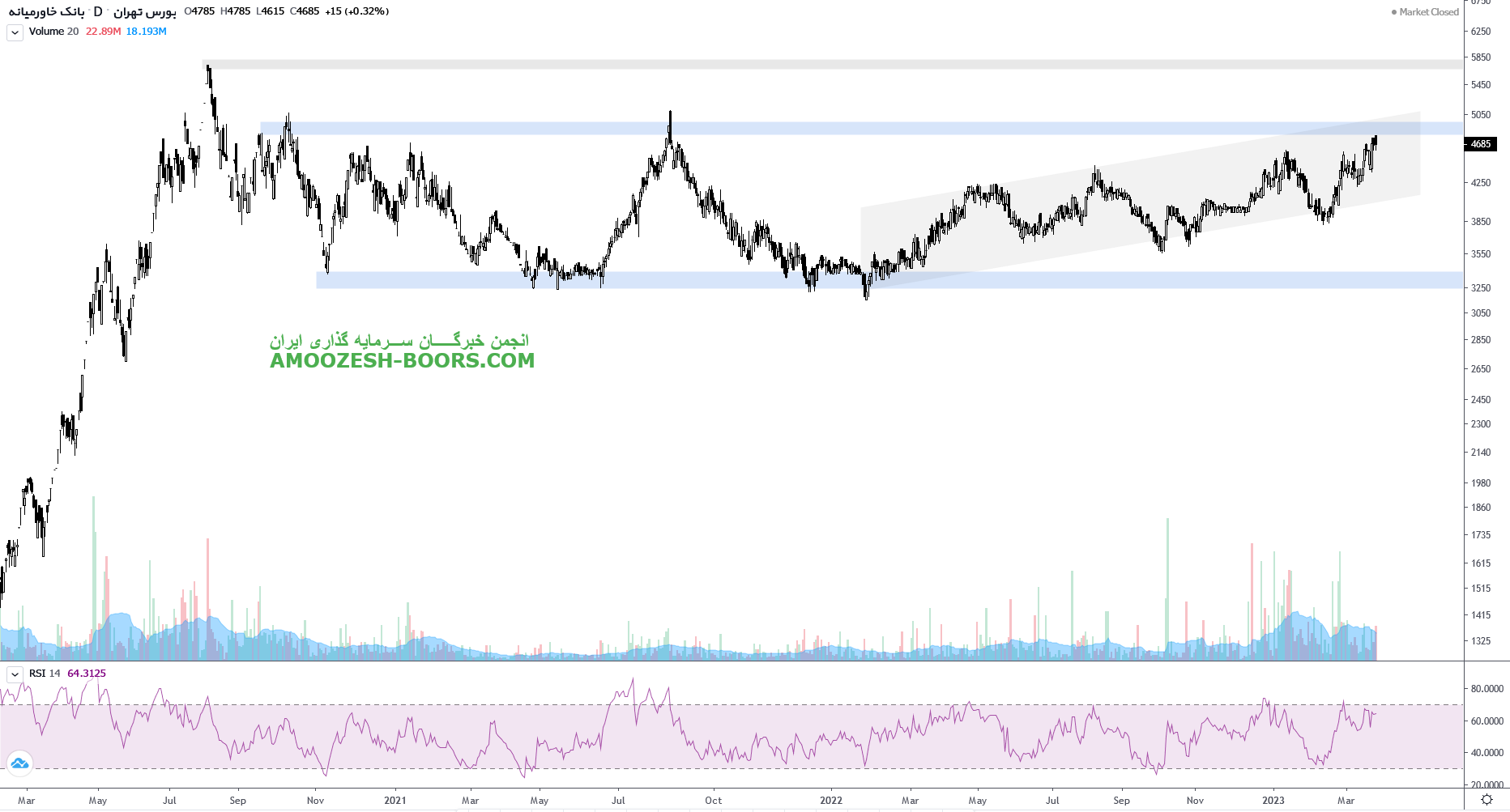 سهم وخاور در قالب یک کانال صعودی در حال رشد و حرکت می باشد. اکنون نیز مقاومت مهم ناحیه ۴۹۰ تومان را پیش روی خود دارد که در صورت عبور از این ناحیه، اولین مقاومت سهم وخاور سقف تاریخی ۵۷۵ تومان در نظر گرفته خواهد شد اما در صورت بروز واکنش منفی نسبت به ناحیه مقاومتی ۴۹۰ تومان، قیمت سهم وخاور می تواند اصلاحی را تا ناحیه کف کانال صعودی که ۴۱۰ تومان می باشد که به همراه داشته باشد.