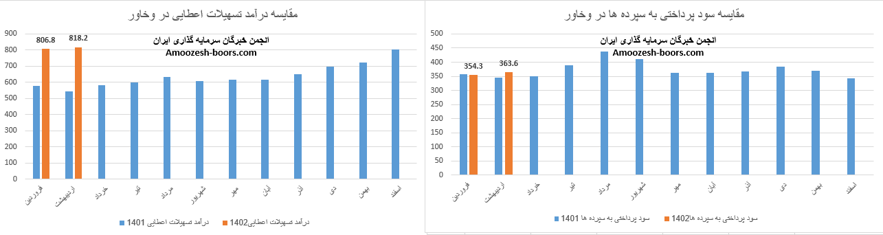 وخاور در فروردین ماه سال 1402 از محل تسهیلات اعطائی، سپرده گذاری، اوراق بدهی و کارمزد به درآمد 806.8 میلیارد تومان دست یافته است، همچنین با توجه به پرداخت 354.3 میلیارد تومان هزینه بابت سود سپرده و هزینه های مالی تراز عالی مثبت 128% را به ثبت رسانده است، نماد وخاور به عنوان سهم کم ریسم و بنیادی گروه بانکی در مرحله اظهار نظر حسابرس جهت افزایش سرمایه 42 درصدی از سود انباشته میباشد و با توجه به میزان و محل تامین افزایش سرمایه بانک خاورمیانه به سهامداران این نماد پیشنهاد به مشارکت در مجمع افزایش سرمایه سهم وخاور میگردد.