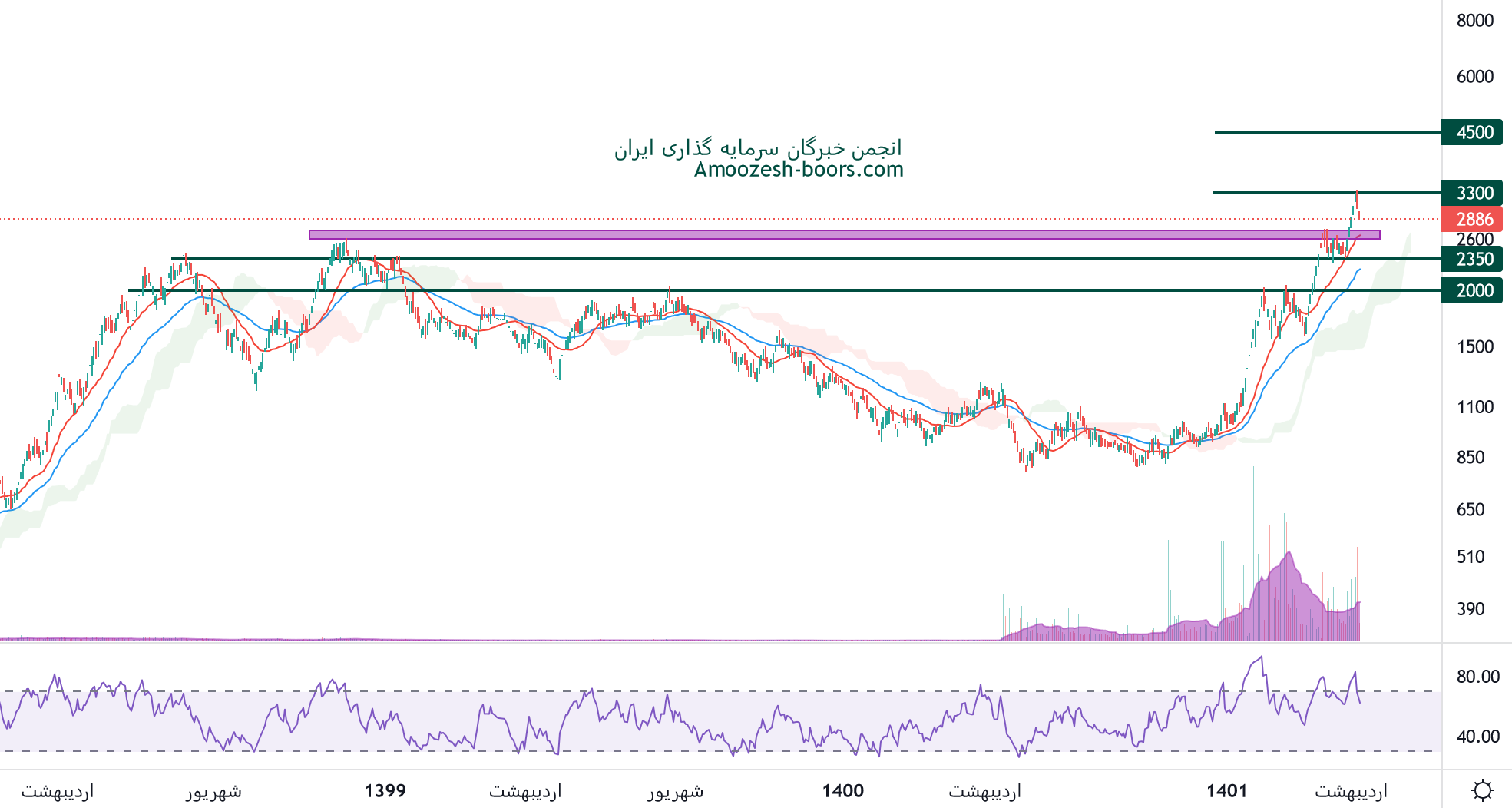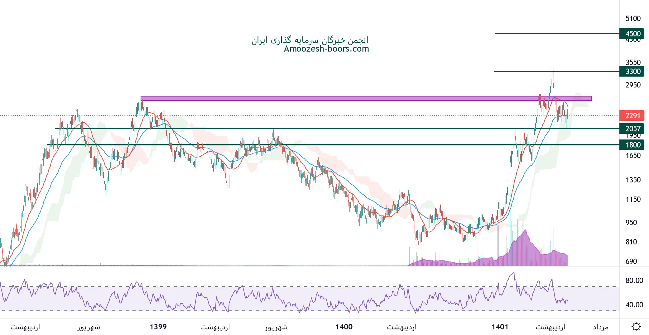 نماد وساخت مابین محدوده حمایتی و مقاومتی 2600 و 3300 ریال قرار دارد، در صورت از دست رفتن سطح حمایتی 2350 ریال پیشنهاد به جایگزینی این نماد میگردد، همچنین در صورت تثبیت قیمت مقاومت بعدی سهم وساخت 4500 ریال خواهد بود.