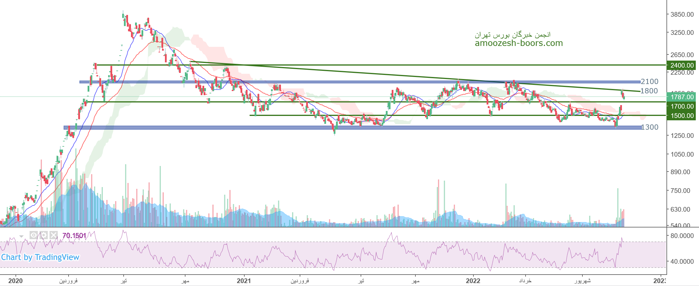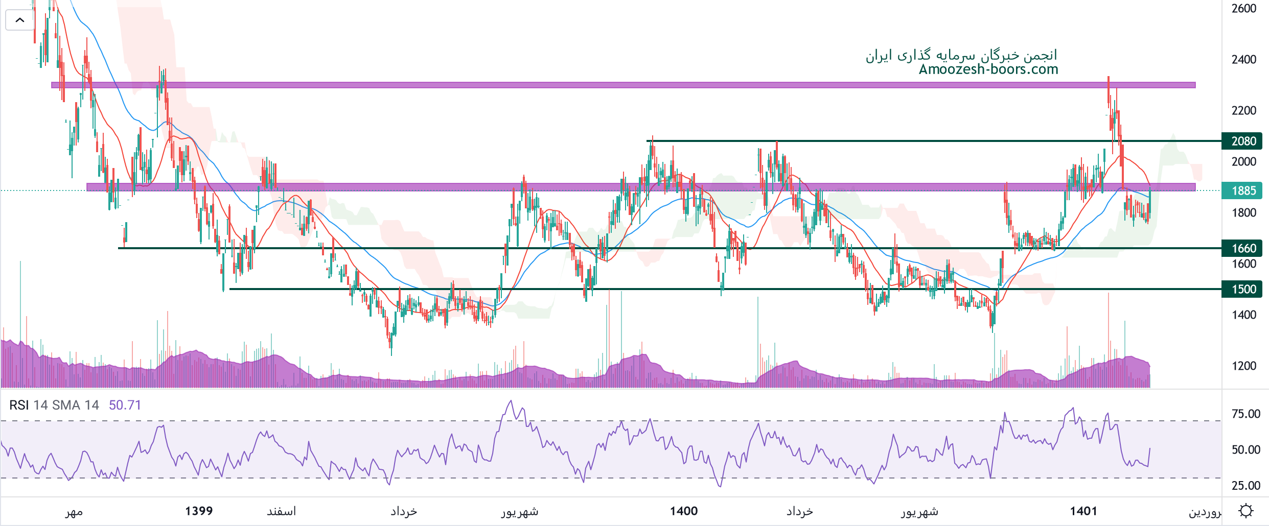 نماد وصنعت مقاومت 1900 ریال را دارا میباشد، در صورت ادامه دار شدن فشار خرید و عبور سهم و صنعت از این محدوده مقاومتی، مقاومت بعدی، 2080 ریال در نظر گرفته خواهد شد، همچنین در صورت اصلاح، حمایت سهم 1660 ریال خواهد بود.