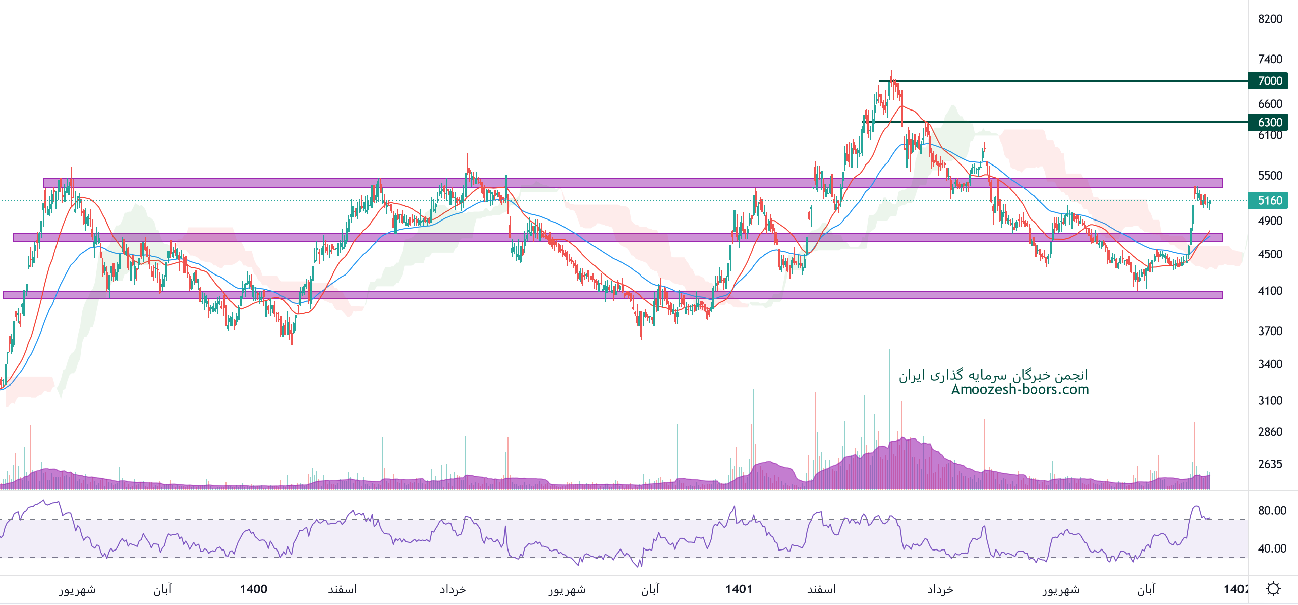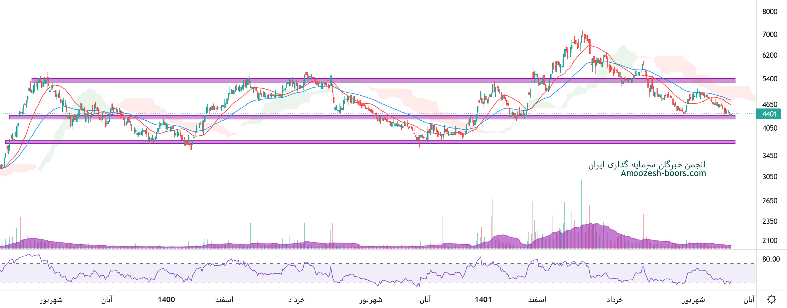 قیمت نماد ومعادن محدوده حمایتی 4300 ریال را دارا میباشد، در صورت حفظ این محدوده قیمت ومعادن میتواند تا محدوده 5300 ریال رشد کند، همچنین در صورت از دست رفتن محدوده حمایتی ذکر شده، حمایت بعدی سهم ومعادن 3700 ریال خواهد بود.