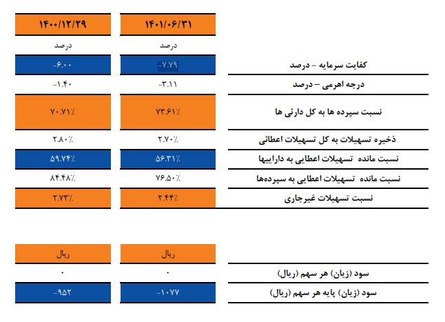 موسسه اعتباری ملل (وملل) طی دوره نه ماهه 1401 به زیان 1070 ریالی به ازای هر سهم رسیده است . باید در نظر داشت این زیان کاهش 192 درصدی نسبت به مدت مشابه سال قب داشته است ، همچنین خالص درآمد تسهیلات و سپرده گذاری 60 % رشد ، خالص درآمد کارمزد341 درصد رشد و جمع درآمدهاي عملياتي افت 231 درصدی را تجربه نوده و وضعیت بنیادی نماد وملل در حال حاضر بسیار پر ریسک ارزیابی میشود .