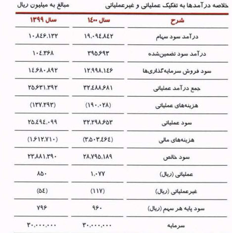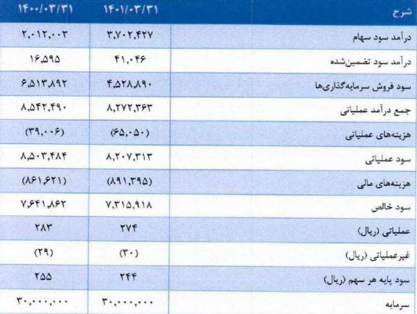 همچنین درآمد حاصل از سود سهام 76 درصد،  سود عملیاتی 27 درصد و هزینه های مالی نیز 117 درصد رشد داشته  است .